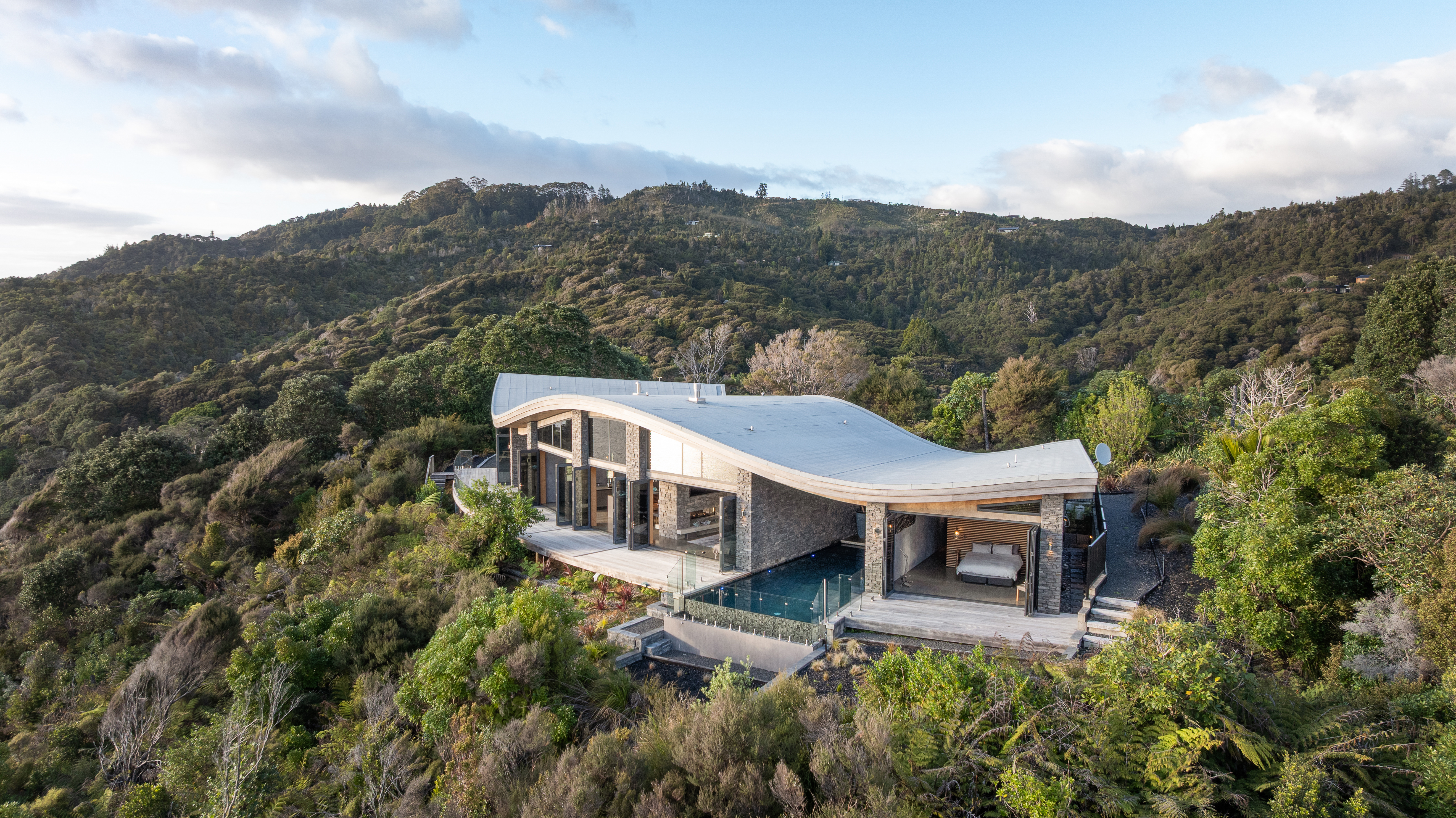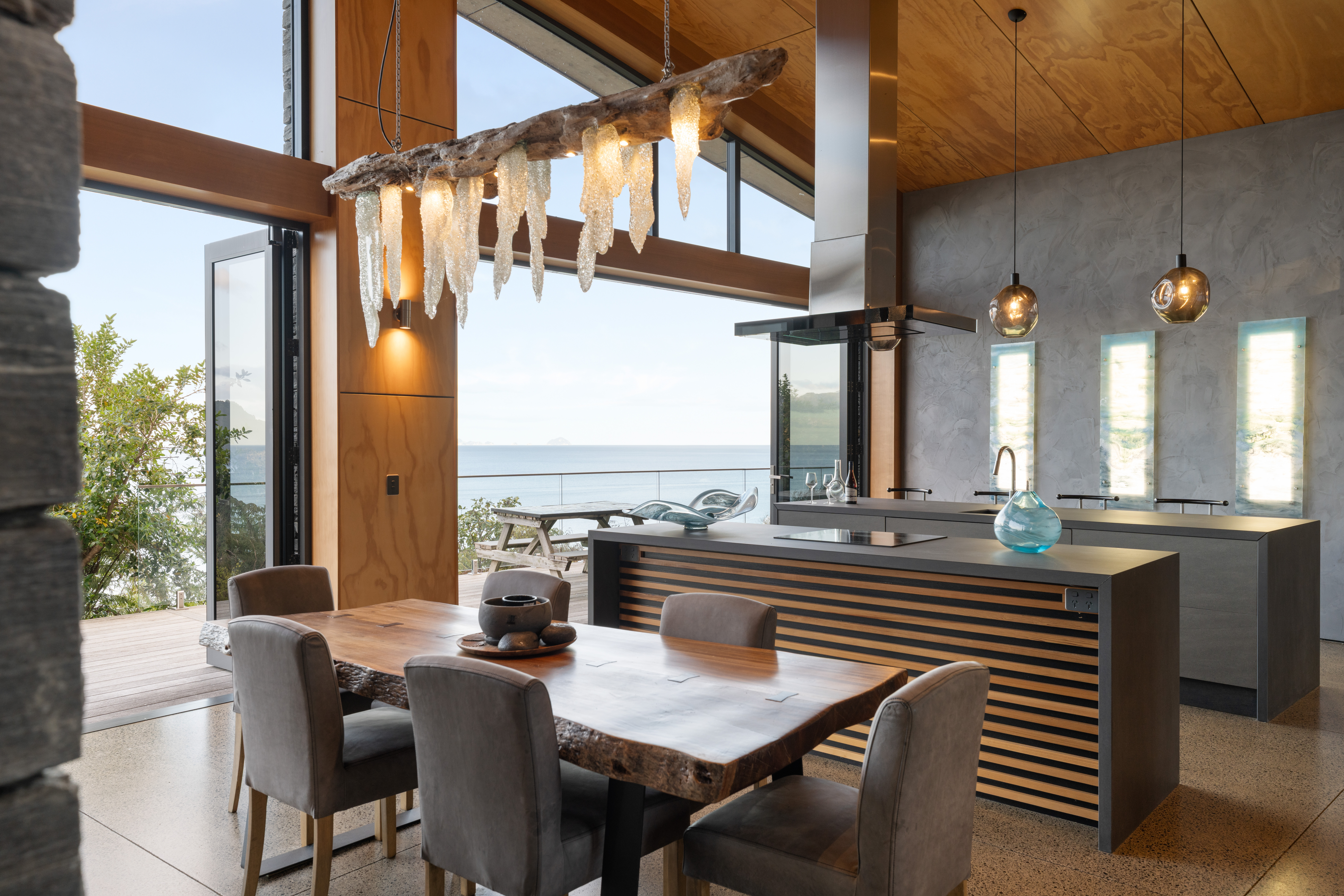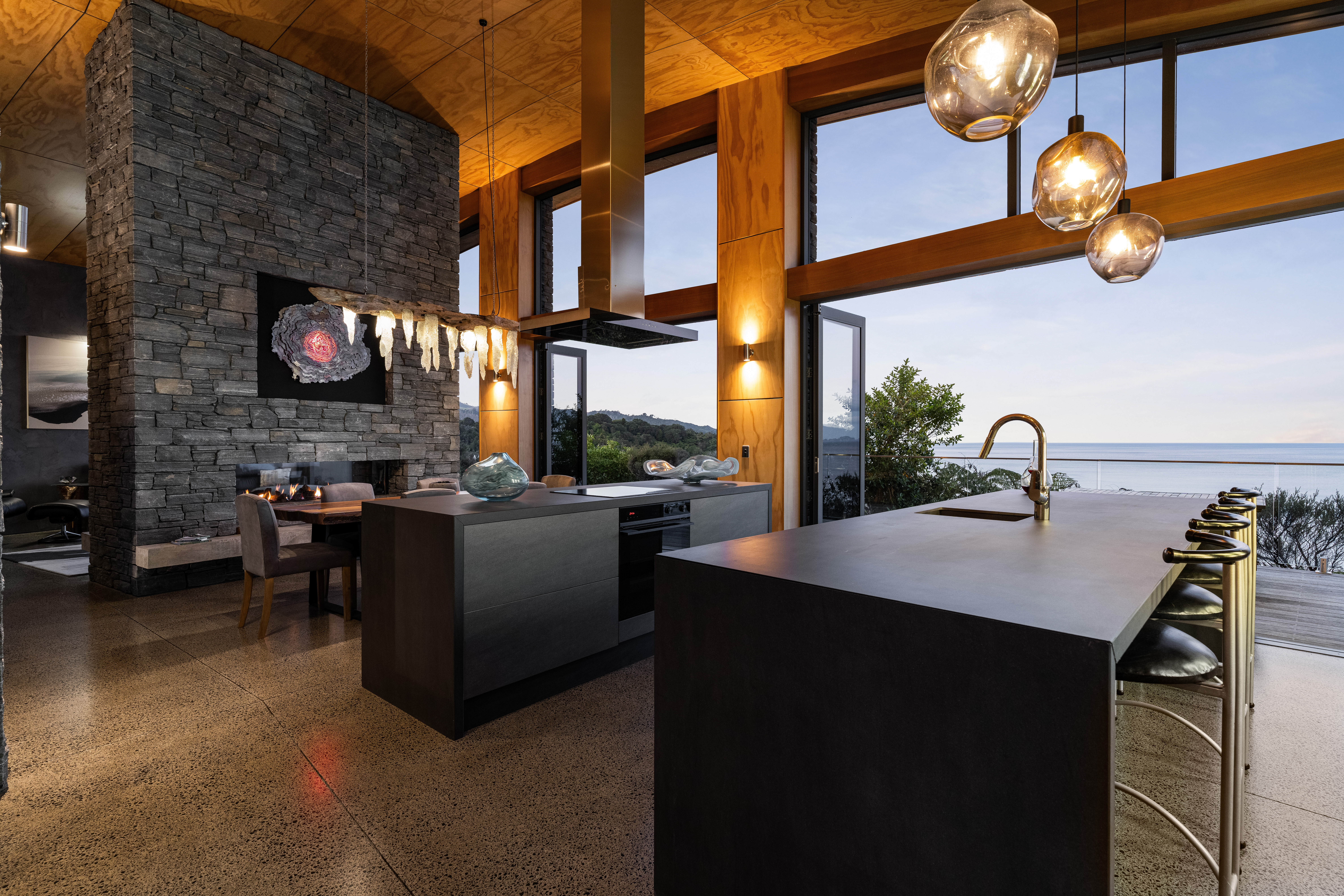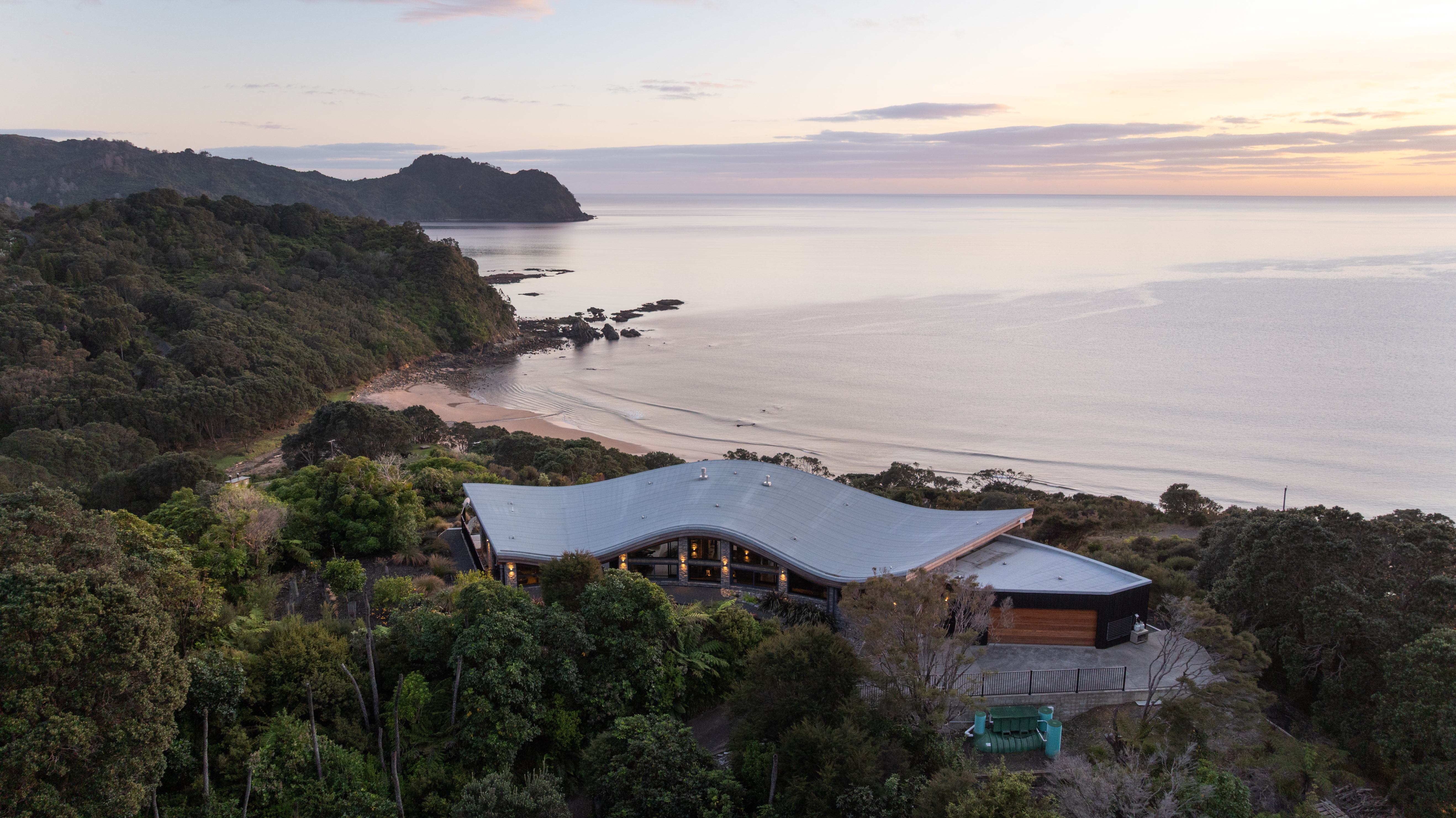 Perched above Te Karo Bay (Sailors Grave Beach) on the Coromandel Peninsula, this architecturally designed two-bedroom, two-bathroom coastal retreat blends Japanese-inspired simplicity with dramatic ocean views. Designed for privacy and calm, the home features two king bedroom suites with ensuites, polished concrete floors, and floor-to-ceiling glass opening to the Pacific. An infinity-edge pool, covered seating area, and expansive deck overlooking the sea create a rare setting for relaxed luxury living in one of the Coromandel’s most secluded coastal locations.