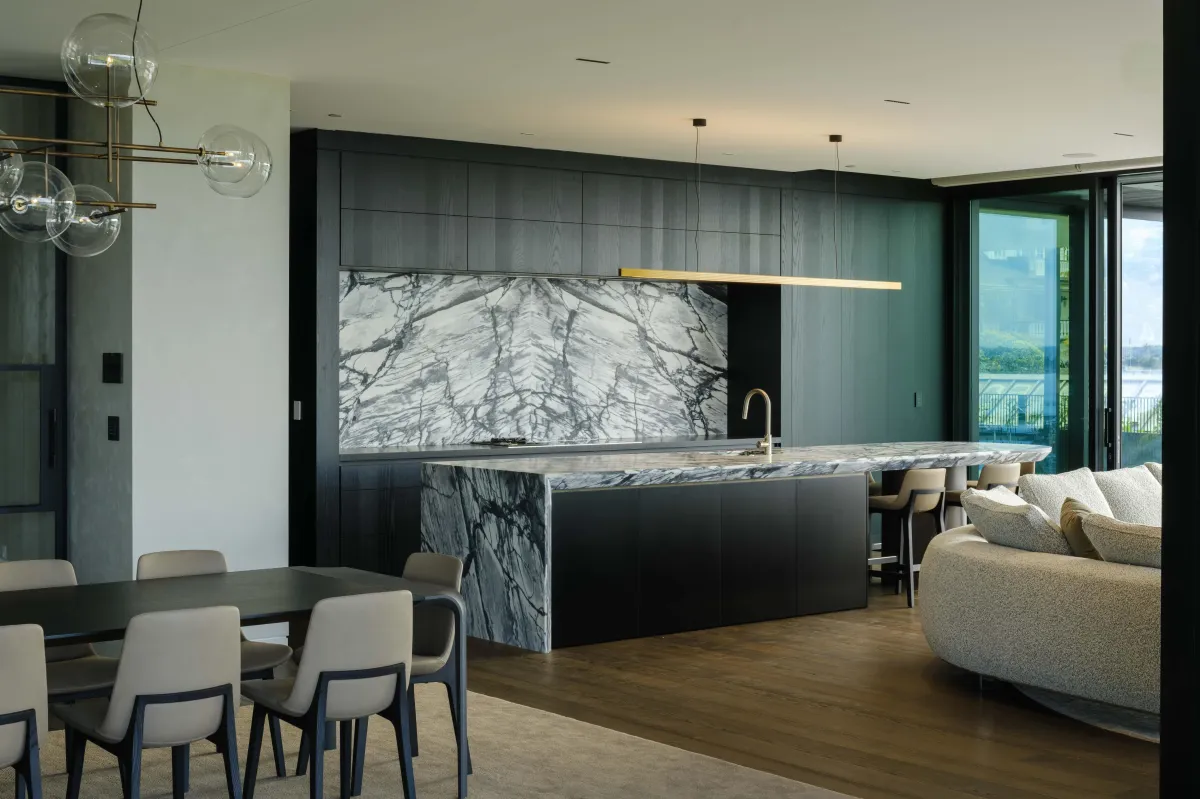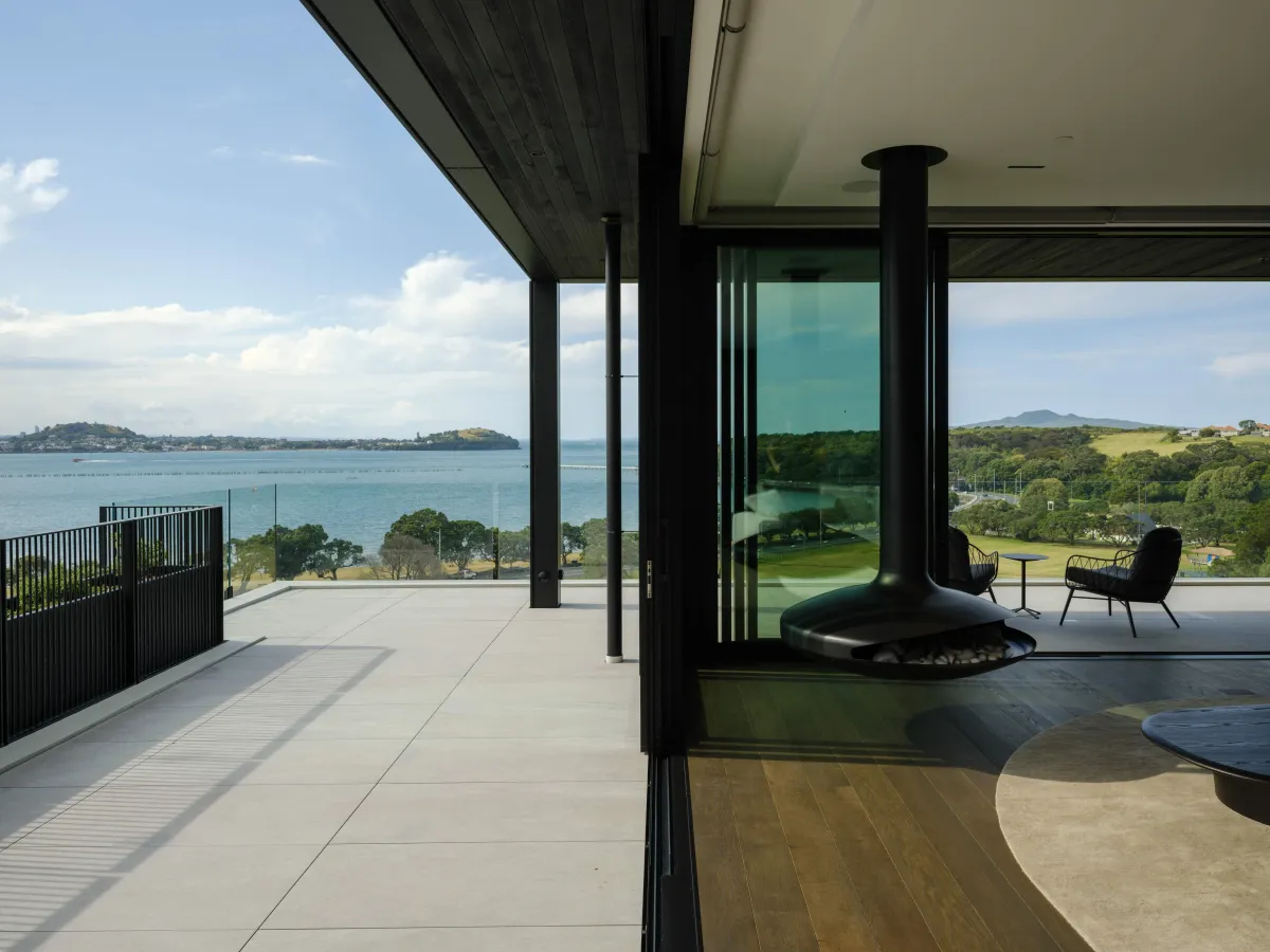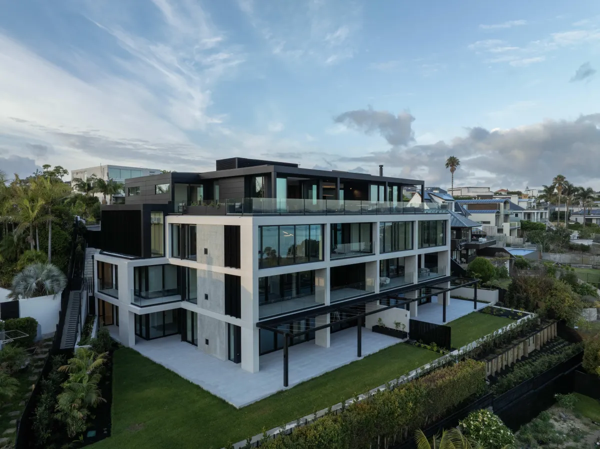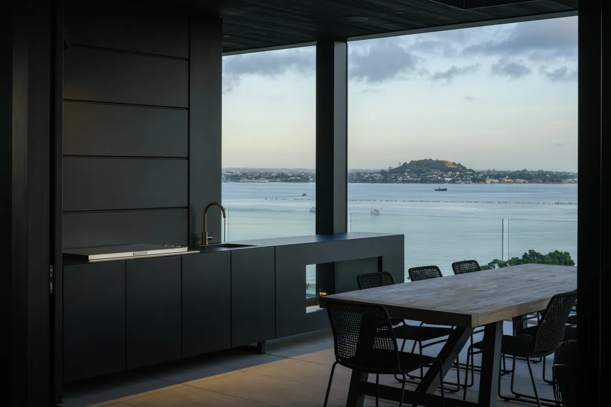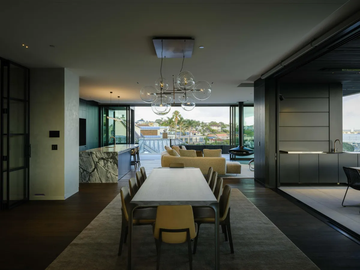 An exclusive ground-floor penthouse designed to embrace the spectacular natural landscape of Ōkahu Bay. Purposefully oriented to the north, the building is bathed in sunlight throughout the day. Set into the hillside along the site's southern boundary, the architecture follows the natural contours of the landscape, creating a graceful blend of luxury, privacy, and secure apartment living.