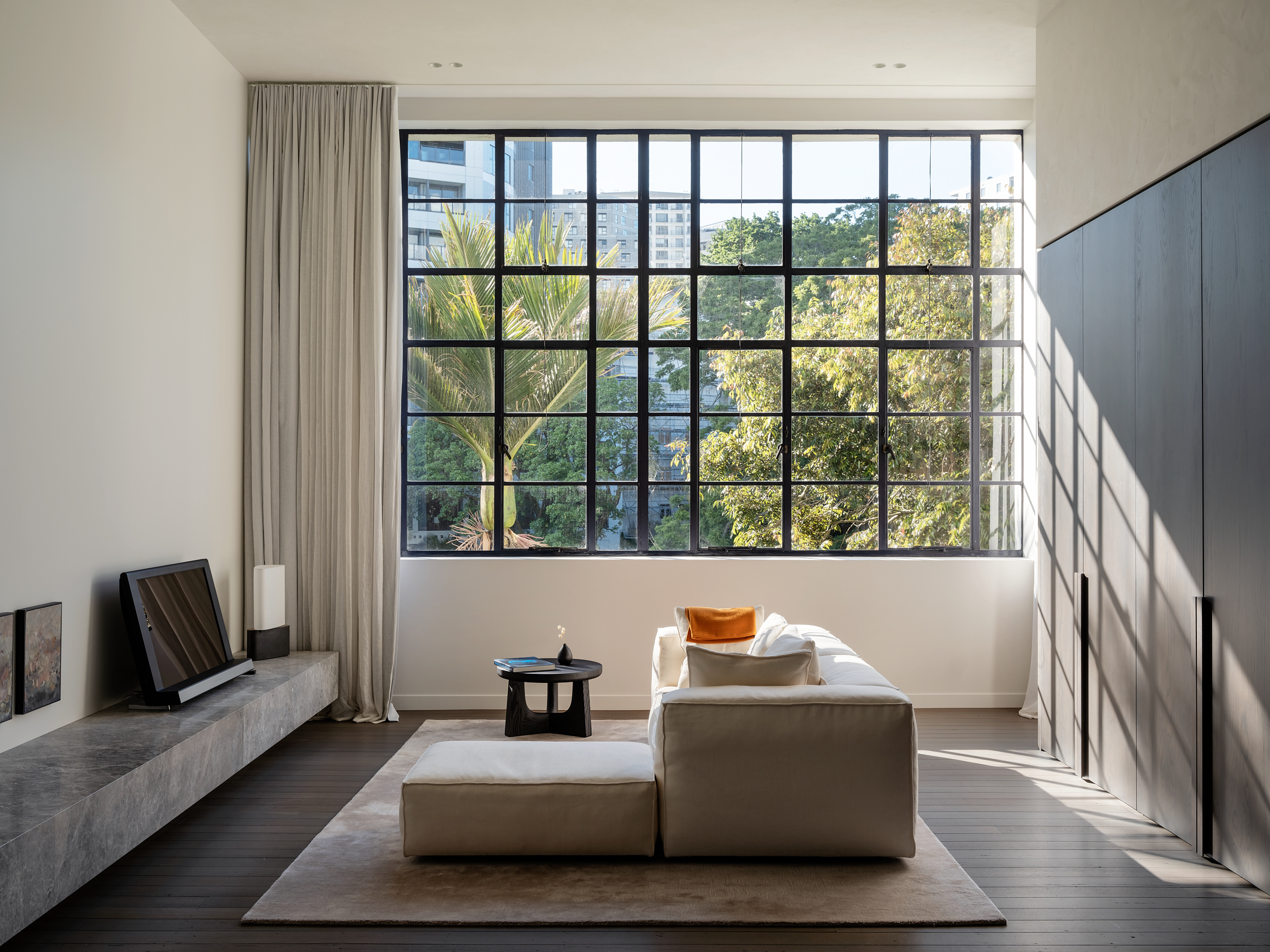 Welcome to the Parklane Loft, a beautifully reimagined space in Auckland’s historic Parklane building. Originally built in 1920 as a textile factory, this loft seamlessly blends industrial charm with modern design, offering a serene city sanctuary filled with natural light.