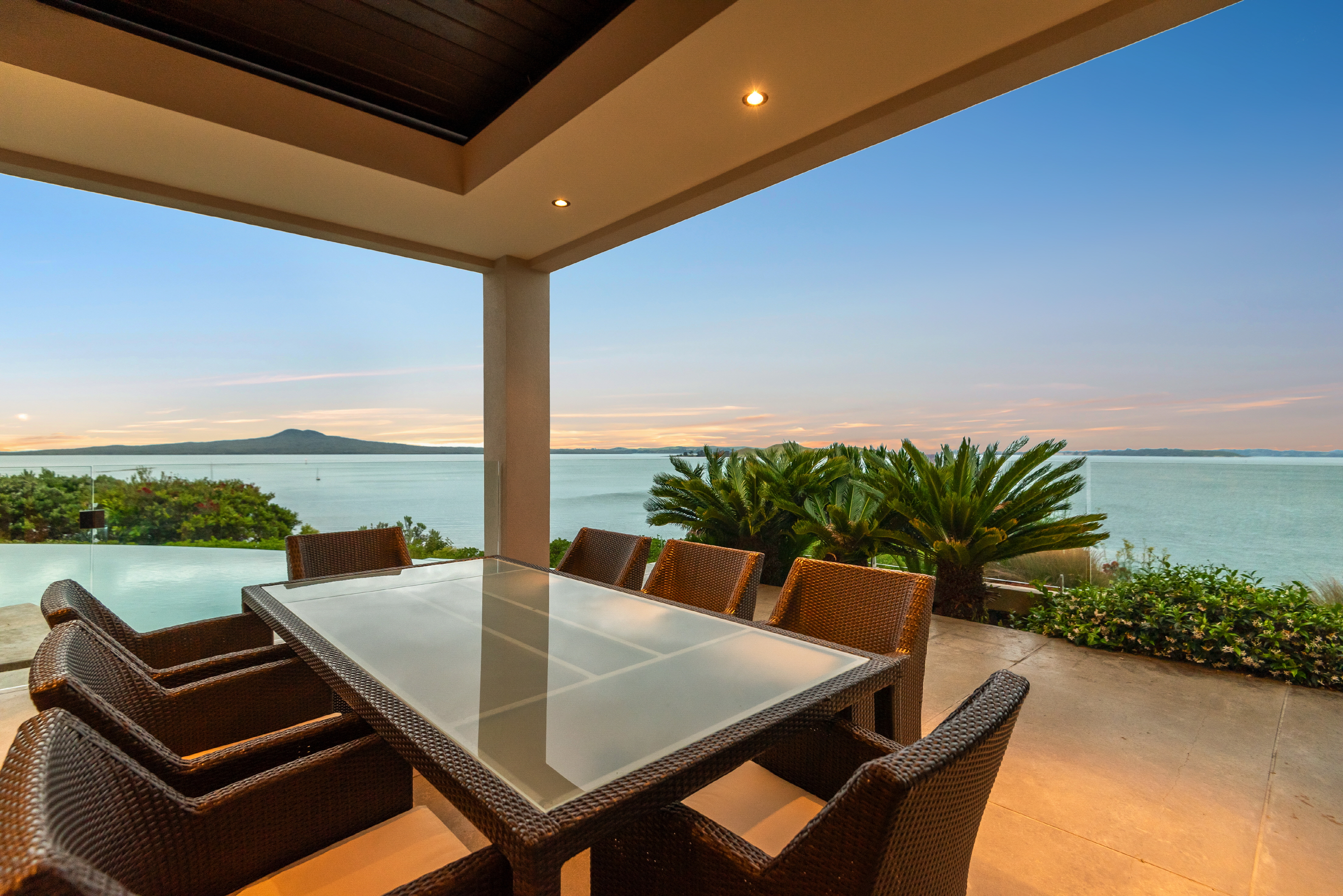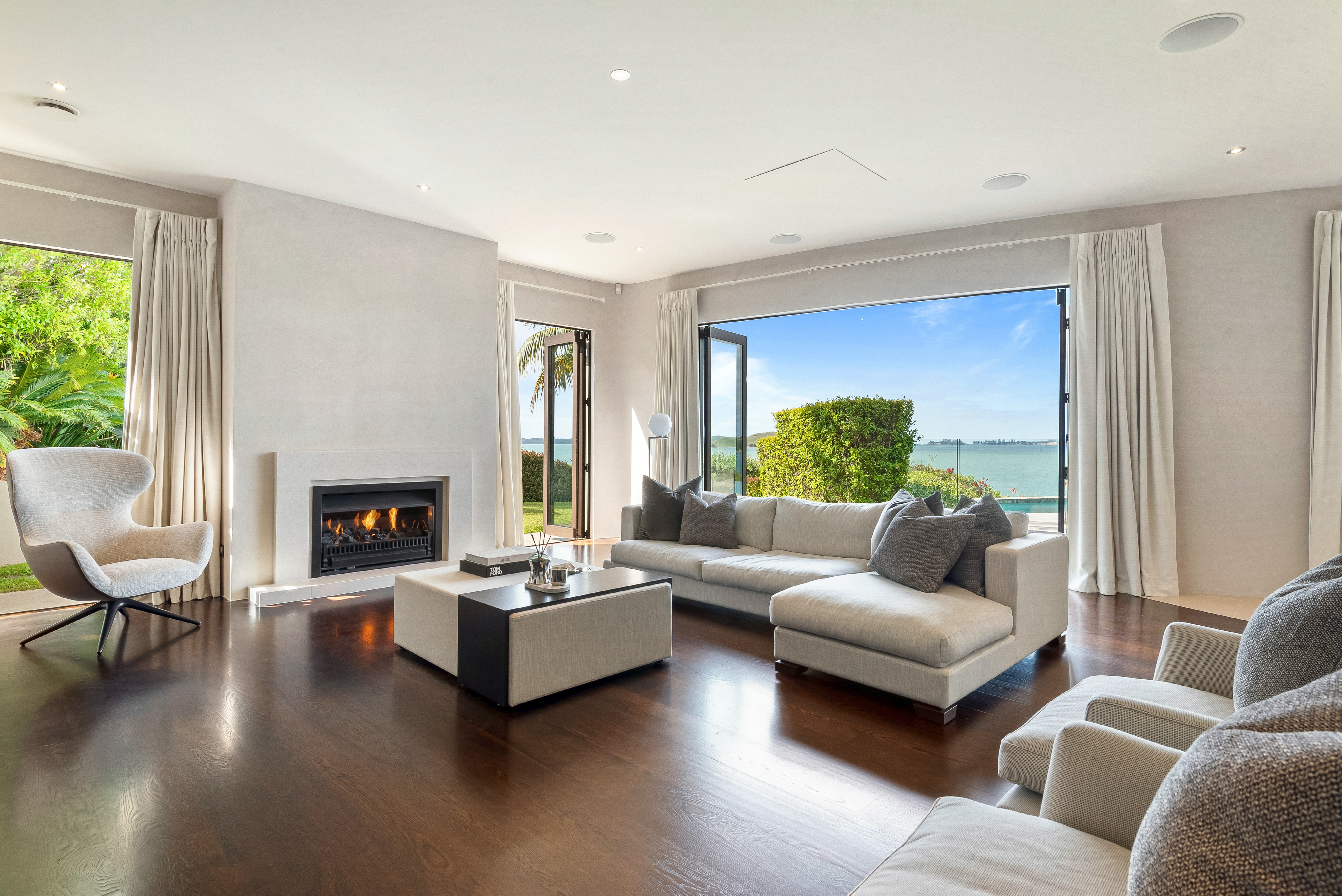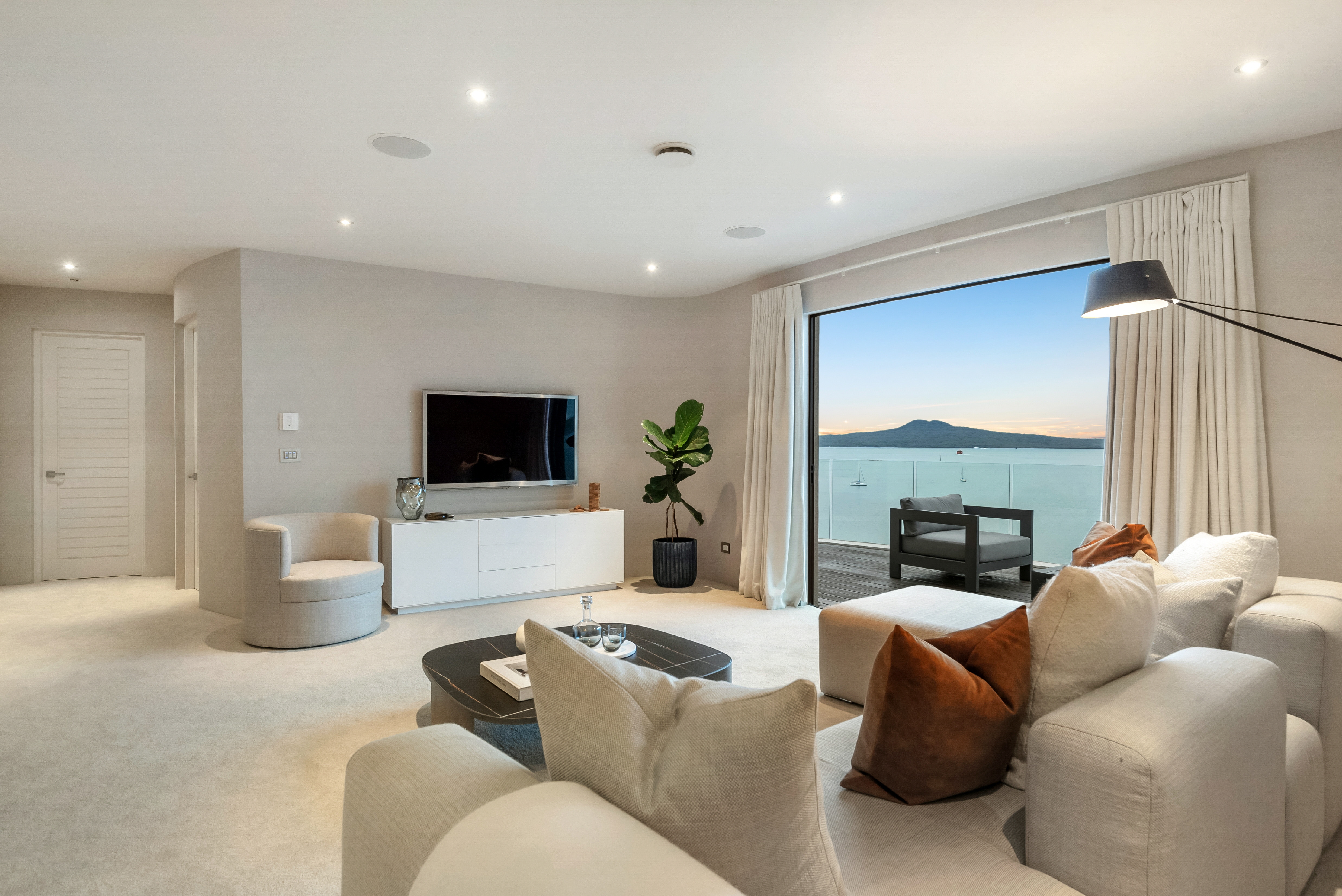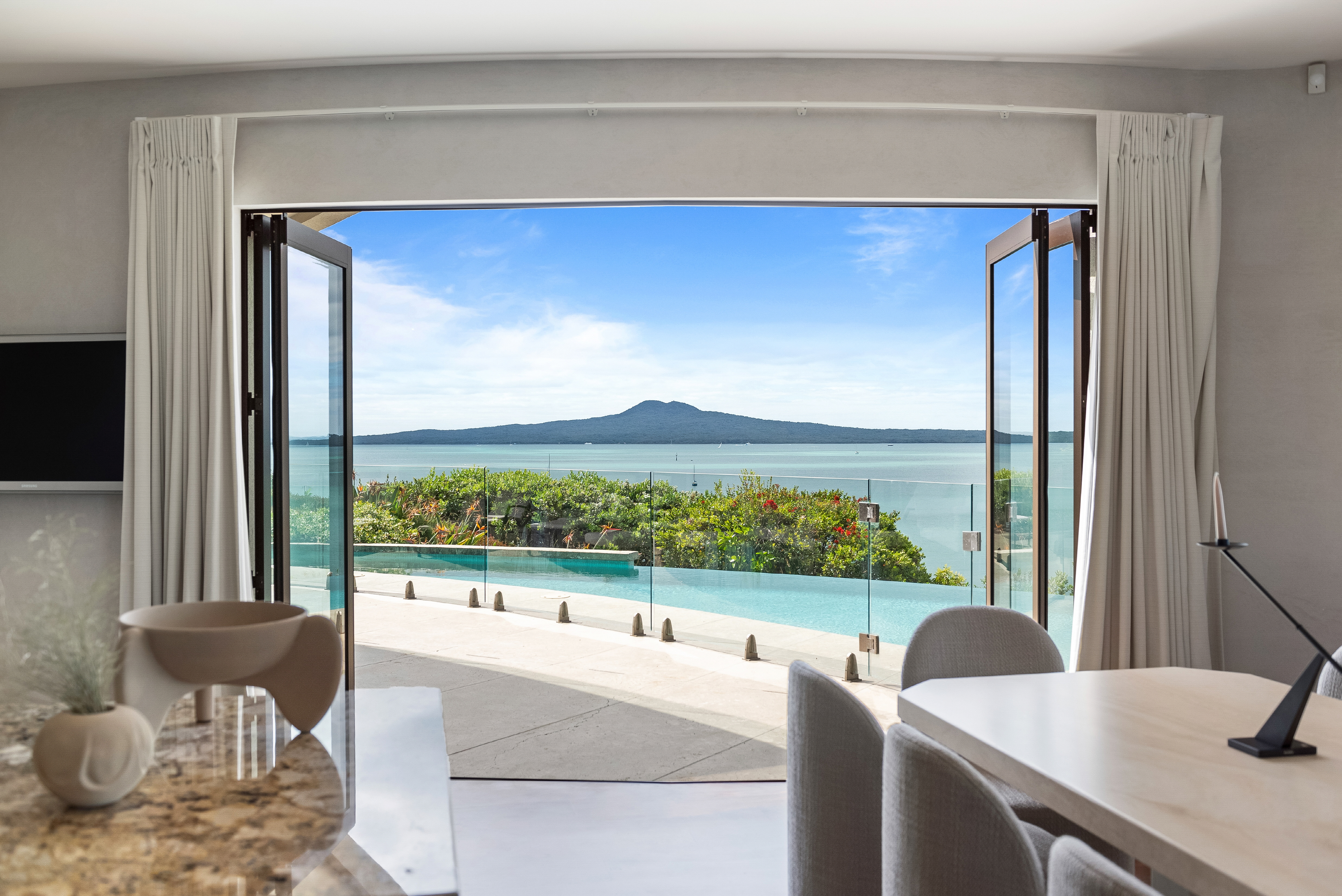 From the moment you arrive, life slows to the rhythm of the sea. Light-filled open-plan spaces unfold effortlessly, framed by floor-to-ceiling glass and uninterrupted views across Karaka Bay and the harbour beyond. Whether gathering for long lunches, quiet evenings in the lounge, or movie nights in the media space, the home offers both connection and calm...